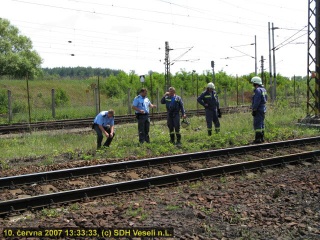 Naše jednotka byla povolána na žádost jednotky HZS ČD a.s. České Budějovice. Jednalo se o požár trávy a náletových křovin v prostoru mezi kolejemi na ploše cca 15x150m na budějovickém zhlaví železniční stanice Veselí nad Lužnicí u trati č.220 Č.Budějovice – Praha na kilometru 37,1. Během požáru rovněž shořela dřevěná bedna o rozměrech (ŠxVxD) cca 1x1x2 m, ve které bylo uskladněno ruční nářadí a náhradní díly (majitel  Správa dopravní cesty,  traťový okrsek Ševětín).