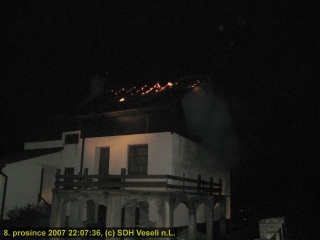 Požár střechy a podkroví rodinného domu v Mažicích byl příčinou výjezdu jednotek SDH Veselí n.L., SDH Mažice a HZS Soběslav v sobotu 8.12.2007 večer.