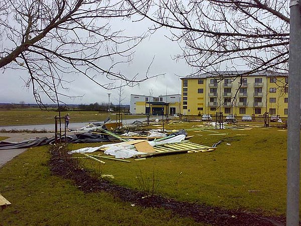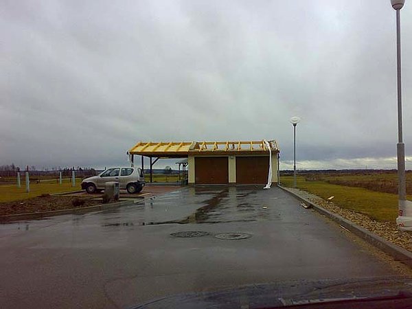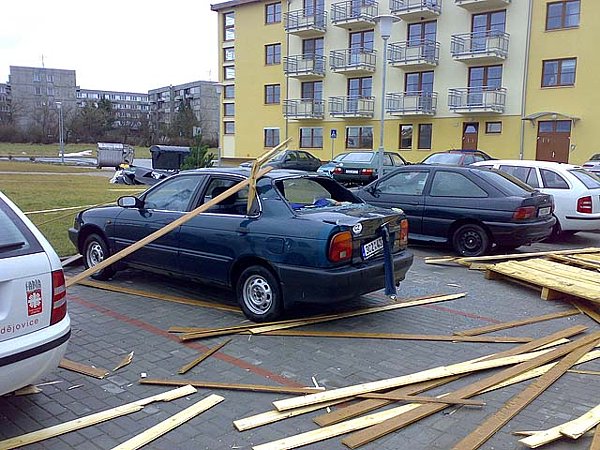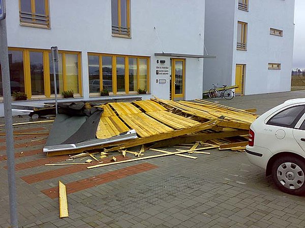 Jako by nestačilo, že naše město sužují  opakující se povodně.Dnes se přes nás přehnala vichřice jejíž stupeň si netroufám odhadovat. Její ničivé následky si můžete prohlédnout v nádledujících fotografiích. Nejvíce utrpěl Domov sv. Františka, kde vítr vyrazil okna v horních patrech a téměř celou střechu "rozházel" po sídlišti.