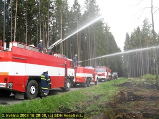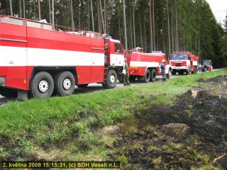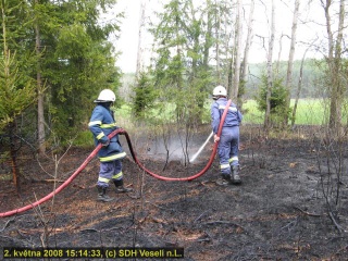 V pátek 2.5.2008 odpoledne se naším městem rozezněl signál požárního poplachu. Jednotka SDH Veselí n.L. vyjížděla k požáru trávy a lesní hrabanky u silnice mezi Žíšovem a Borkovicemi.