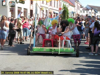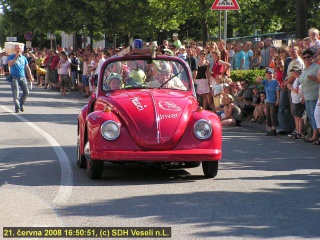 Celkem se v horkém sobotním odpoledni dne 21.června 2008 postavilo na start devět nejrůznějších vozidel, z toho jich sedm připravili členové Sboru dobrovolných hasičů Veselí nad Lužnicí či jejich ratolesti. Tato převaha v kvantitě se nutně projevila i v kvalitě a také v hodnocení odborné poroty, která se skládala z přítomných starostů obcí se jménem Veselí v názvu. Ti byli jízdě přítomni v rámci 16.setkání Veseláků, které letos pořádalo naše město. První místo obsadil krásný brouček pod názvem Hasičský plážový automobil. Druhá příčka patřila vozidlu nejrozměrnějšímu, které soutěžilo pod názvem Veselí Beach. O třetí místo se podělil Půllitr jaký svět neviděl a jediné nehasičské vozidlo na stupních vítězů, totiž 1.mezimostská paroplavební společnost R.Virt a synové. Vozidla, která postavili členové SDH Veselí n.L. a jejich ratolesti