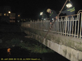 Jednotka vyjížděla na základě výzvy starosty města Veselí nad Lužnicí, Mgr. Jaromíra Nováka, kterého občané upozornili, že na mostě přes řeku Lužnici v centru města se zachycují naplavené kmeny a zabraňují průtoku vody. Povodí Vltavy provádělo měření průtoků v profilu bývalé limnigrafické stanice pod rybníkem Rožmberk. Z tohoto důvodu byl během dne zvyšován průtok v Lužnici otevíráním základových výpustí rybníka Rožmberk. Zvýšený průtok pak způsobil naplavení kmenů a klád, které se zachytávaly na mostním pilíři.