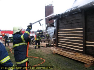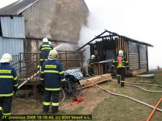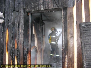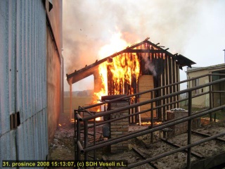 Přípravy na oslavu konce roku přerušil ve středu 31.12.2008 odpoledne členům zásahové jednotky SDH Veselí n.L. výjezd k požáru trvale obydlené zahradní chatky v Hamru.