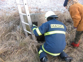 Psa, který při vycházce spadnul do částečně odkryté meliorační jímky na louce pod Tyršovou čtvrtí, vyprostili členové zásahové jednotky SDH Veselí nad Lužnicí v sobotu 3.ledna 2009 odpoledne.