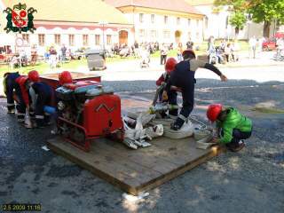 Příležitost k prvnímu představení se veřejnosti naše mladé naděje měli při 9.ročníku soutěže O putovní pohár starosty města Bechyně, který se uskutečnil v sobotu 2.května 2009 dopoledne. Na start se naše družstvo postavilo v kategorii starších dětí, přestože při složení Michaela Urbanová (koš), Jaroslav Březina (savice), Václav Skála (savice), Filip Jakeš (strojník), Jan Benda (rozdělovač), Tereza Urbanová (levý proud) a Karolína Fukalová (pravý proud) jich většina spadala ještě do mladší kategorie.