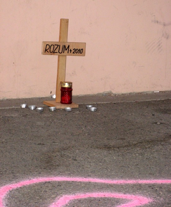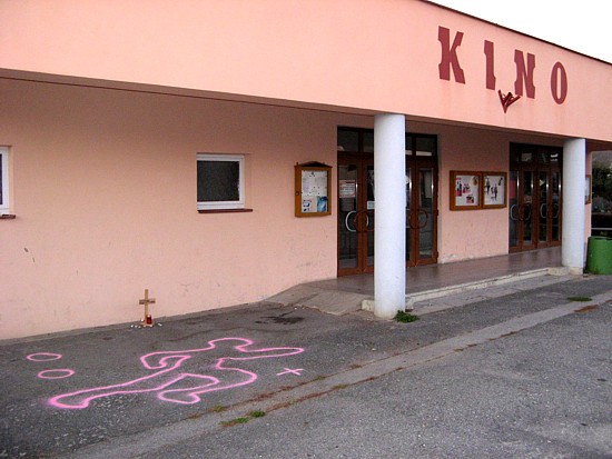 Obrys mrtvoly a kříž, který pohřbil rozum. Před kinem ve Veselí nad Lužnicí se objevil výjev, který připomíná policejní ohledání místa po spáchání trestného činu. Rececistická akce pravděpodobně souvisí s prodeje objektu kina, které schválilo zastupitelstvo města na posledním zasedání. Kupujícím je místní podnikatelka paní Filípková, která za kino nabídla částku 1.650.000,-Kč. V objektu chce vybudovat prodejnu stavebnin a průmyslového zboží. Dlouholetá vedoucí kina Lidmila Lavičková počin neznámého vtipálka ocenila. U "místa činu" zasahovala městská policie, která na základě podnětu místo odklidila. Jaký máte názor na prodej kina vy? Vadí vám, že bude z kina prodejna stavebnin?