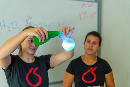 Zástupci VŠCHT přivezli s sebou programy „Potraviny pod lupou“ a „Chemie v kriminalistice“.  Ukázali žákům, jak moc je chemie zajímavá a kde všude pomáhá.