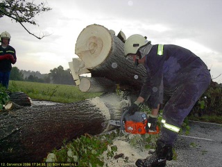 Nejprve naše jednotka byla vyslána na silnici III.třídy 147 z Veselí nad Lužnicí do Nítovic k osadě Vřesná. Po příjezdu na místo události bylo průzkumem zjištěno, že se jedná o vyvrácený strom, který padl přes vozovku a zůstal viset na drátech vysokého napětí. Naše jednotka padlý strom odstranila a na rozkaz OPIS pokračovala v cestě přes Pleše a Doňov  na silnici II.třídy 23 z Kardašovy Řečice ke křižovatce U sloupu. Na této silnici za obcí Doňov odstranila naše jednotka pět stromů padlých přes vozovku. Na místo se dostavila rovněž jednotka SDH Kardašova Řečice, která se zapojila do odstraňování stromů. Po uvolnění vozovky se naše jednotka přesunula do Veselí nad Lužnicí, ul.Hybešova, kde ve firmě p.Laciny pomohla za pomoci košťat vymést vodu z výrobní haly. Po ukončení činnosti naše jednotka provedla na žádost OPIS kontrolu silnice z Veselí nad Lužnicí do Drahova. Zde byl padlý strom již odstraněn a jednotka se tak vrátila na základnu. Technika: DA-12 Avia, motorová pila Oleo-Mac 2x, vyhlášení poplachu 14:50, výjezd jednotky 15:01, návrat na základnu 19:00, zasahovali 4 členové zásahové jednotky.