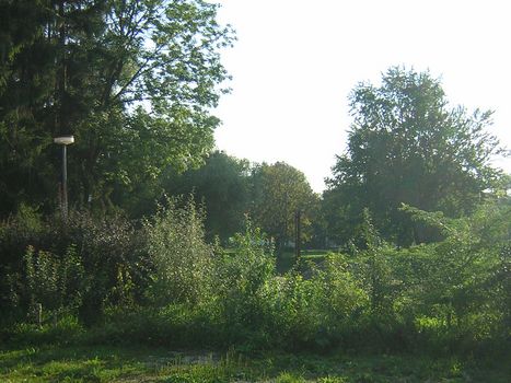 Pohled na sportovní areál z Foglarova nábřeží přes řeku Nežárku: